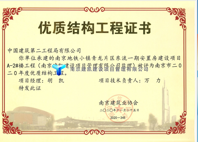 2021年榮獲優(yōu)質(zhì)結(jié)構(gòu)項目—南京地鐵小鎮(zhèn)青龍片區(qū)東流一期安置房建設(shè)項目