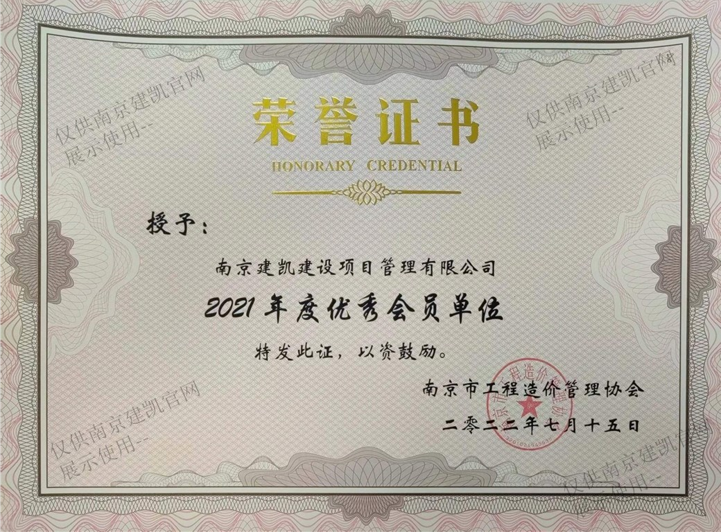 祝賀我司榮獲南京市工程造價(jià)管理協(xié)會(huì)“2021年度優(yōu)秀會(huì)員單位”