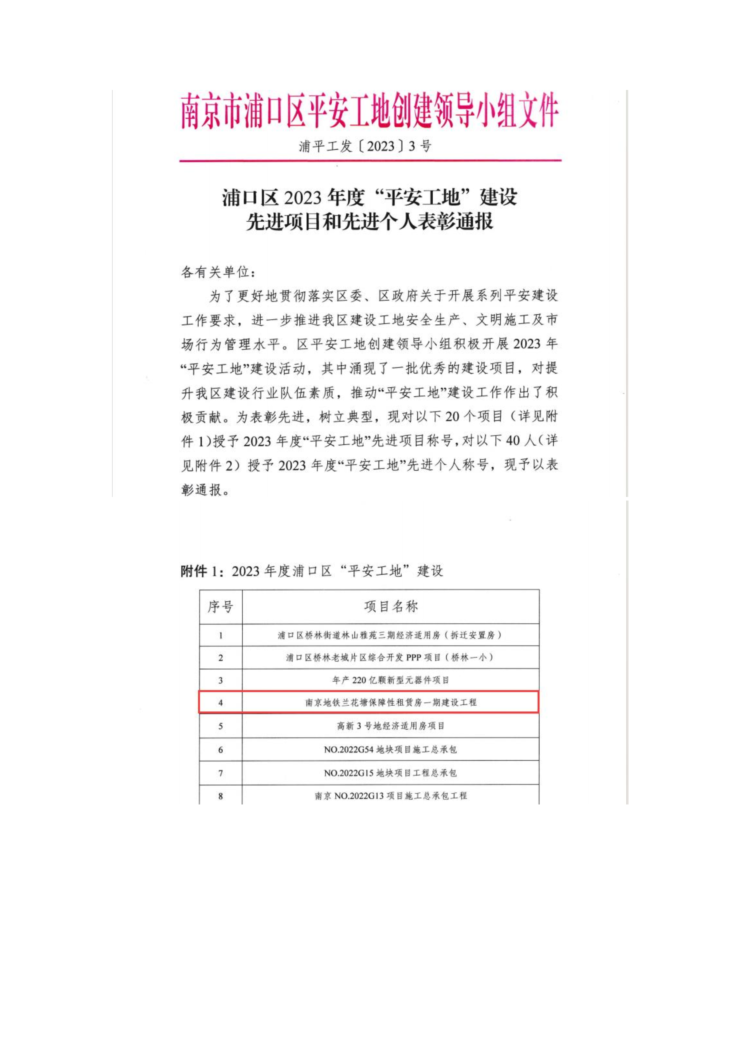 南京地鐵蘭花塘保障性租貨房一期建設(shè)工程榮獲“浦口區(qū)2023年度“平安工地”建設(shè)先進項目”